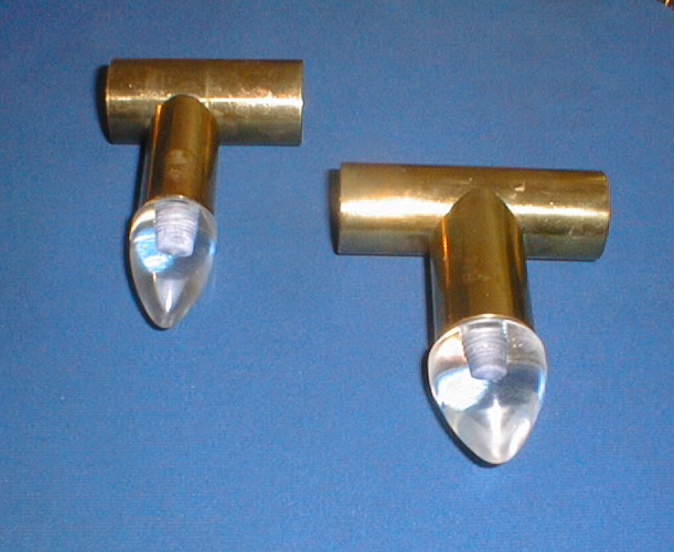 Meine ersten A-Elektroden waren einfache mehr oder weniger dicke Röhrchen mit abgerundetem Kopf, zum Beispiel abgeschliffene Zigarrenhüllen oder metallische Dildos. Auch verchromte Kunststoff-Dildos lassen sich leicht elektrisch anschließen. Alle diese Dinge hatten den Nachteil, dass sie aus dem Anus rausrutschen können oder - viel unangenehmer - in den Po reinrutschen. Nach meiner Erfahrung ist die beste Wirkung direkt im Schließmuskel. Der Teil der Kontaktfläche im Darm macht (zumindestens bei mir) keine interessante Reizung.