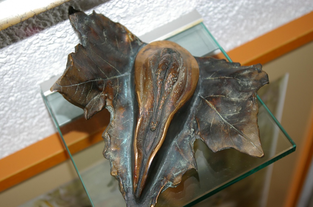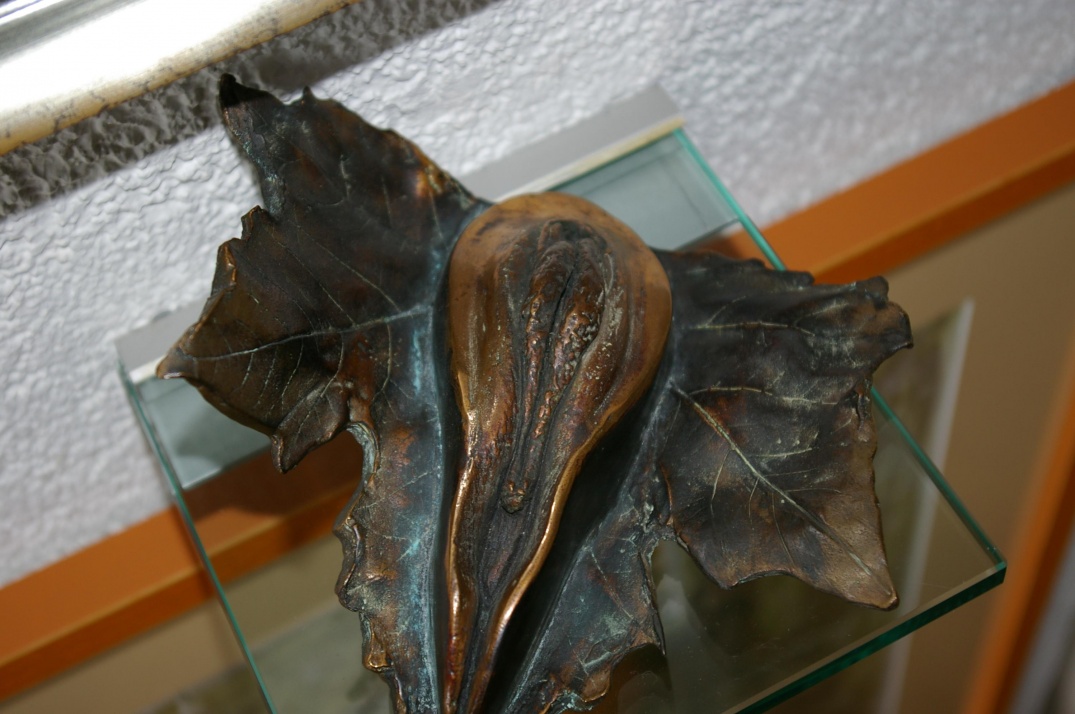 Die beiden Bilder zeigen eine Bronze mit dem Titel: Wein und Weib