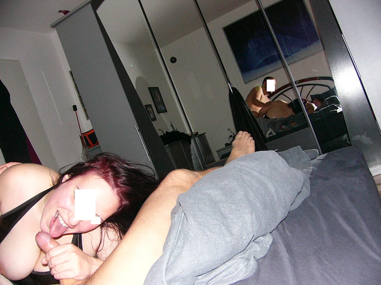 Mrs. Moogie spürt den nahenden Höhepunkt von Herr S. und bringt sich sehr fotogen in Stellung. Ich konnte ihr so direkt in ihren Mund knipsen, als Herr S. seine warme Sahne aus seiner Eichel pumpte..