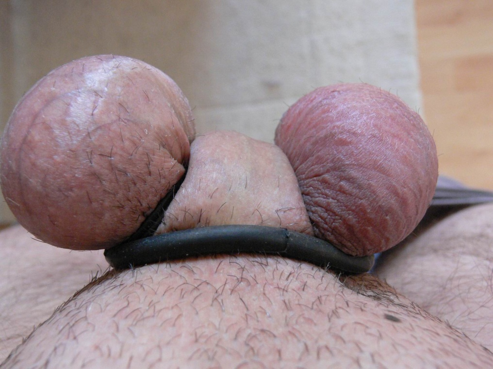 Zuerst jedes Ei einzeln mit einem Gummi abbinden. Mit einem dritten Gummi die Eier oben über dem Schwanz zusammenziehen. Na ja, und dann natürlich so lange wie möglich tragen und dabei wichsen.