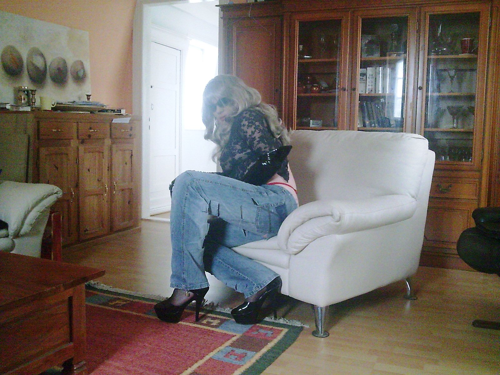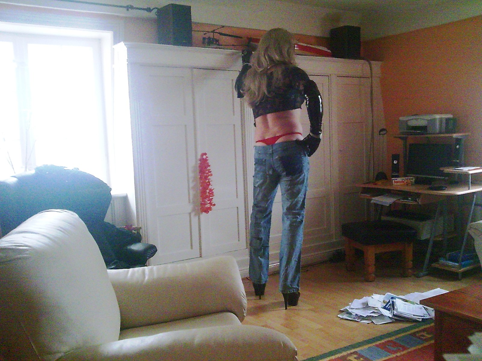 oh verschiedene geile sachen, in diesem fall halterlose naht nylons, einen roten lederslip und natürlich high heels (kein BH)