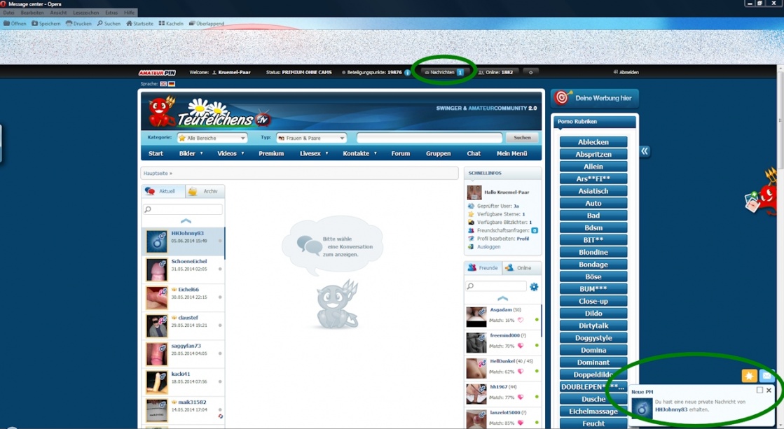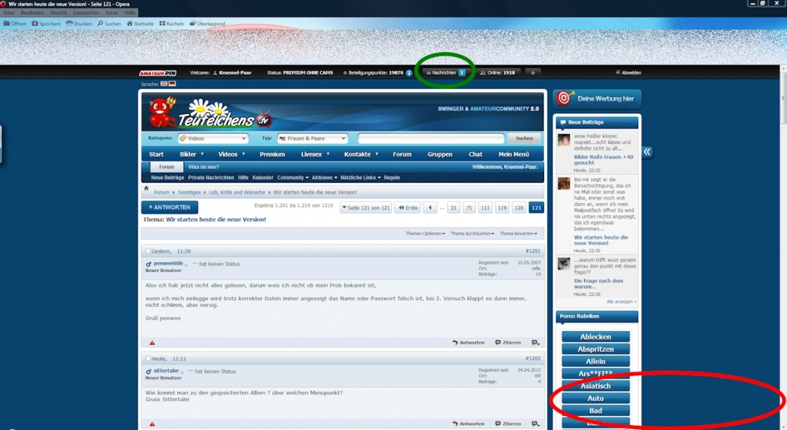 Ach und bei den Pinnwand- (Gästebuchteinträgen) wäre es schön wenn man wieder die Möglichkeit hätte sich die Konversation mit diesem User aufzurufen. Da hatte man einfach einen besseren Überblick und konnte noch mal nachlesen. Jetzt müsste ich dazu zwischen den Profilen hin und her und die GBs durchscrollen.