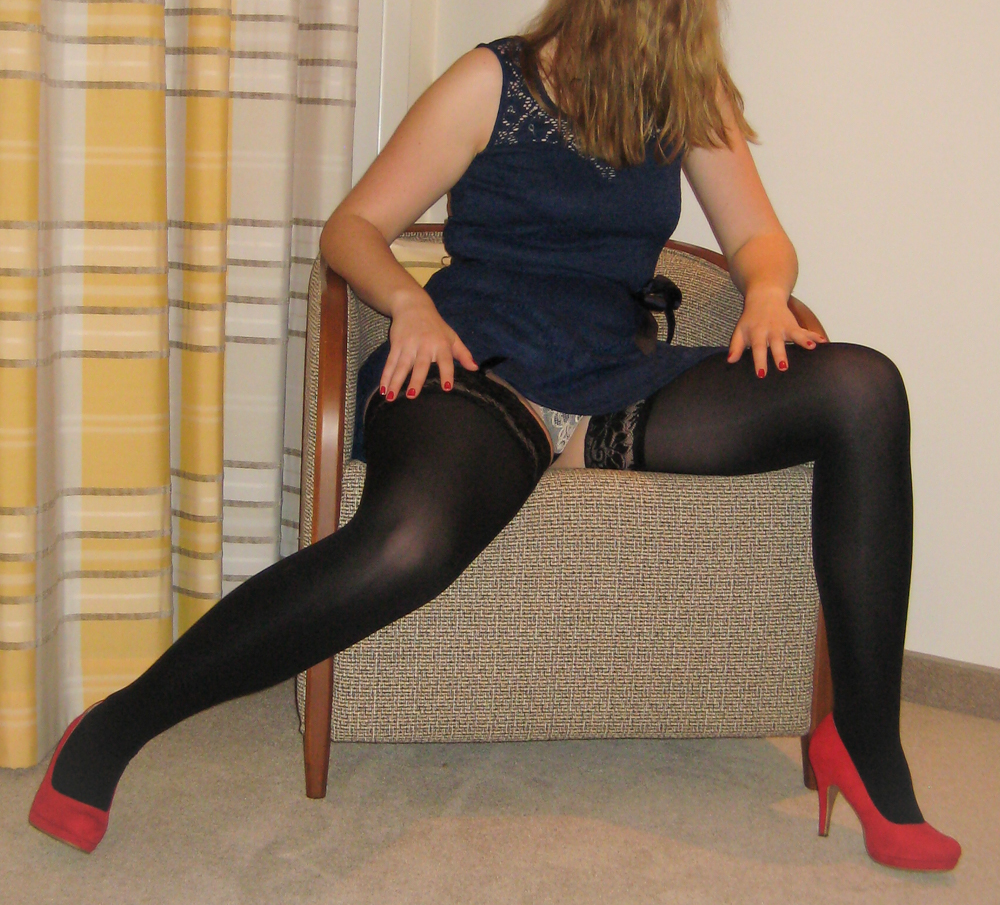 Meine geile Frau in Strumpfhosen, gerne geile Kommentare zu Ihr.