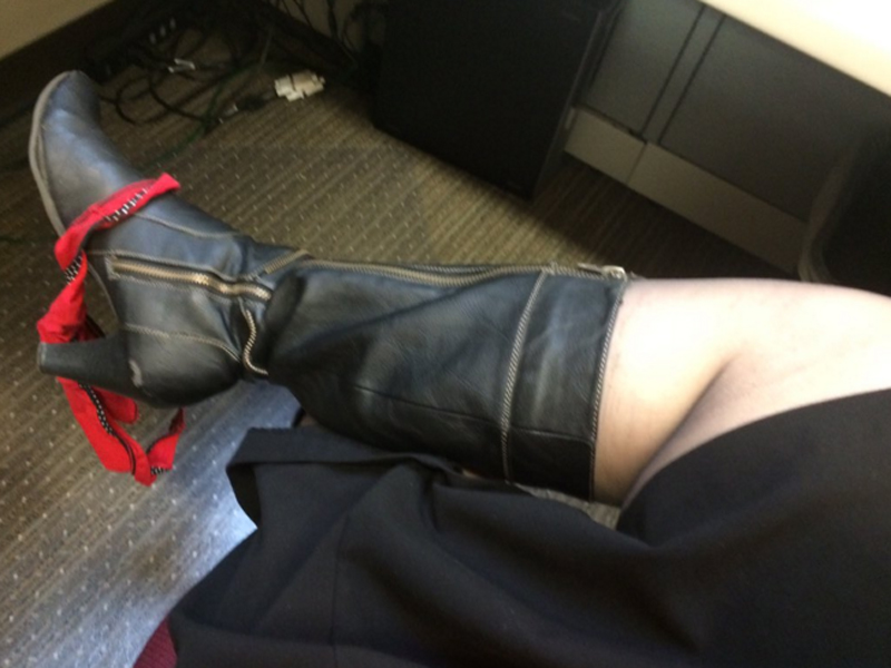 Kenneth1 Habe heute noch was vor, daher dieser Look im Büro ;-) ...warum sehen meine Kolleginnen im Büro bloß nicht so heiß aus wenn sie noch was vor haben? sehr schöne Bilder...besonders das mit dem Slip am Stiefel 😊 da wird es doch sofort zu eng in der Hose...