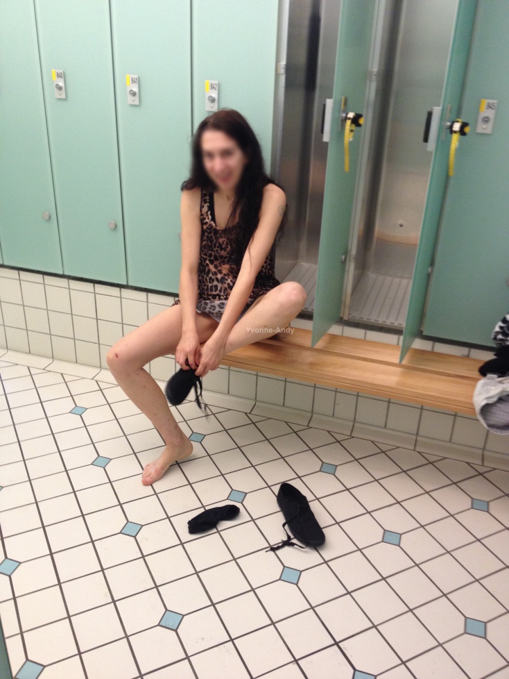 Also man geht in die Sammelumkleidekabine wo viele Leute sind.