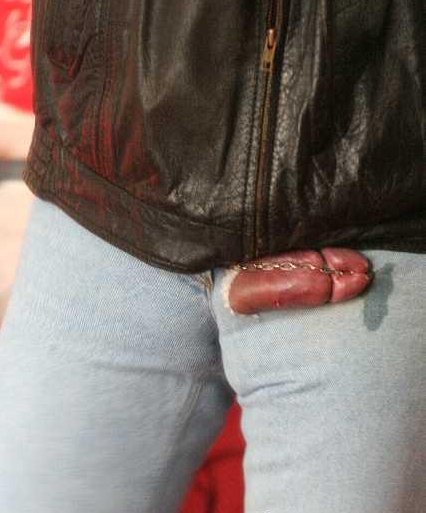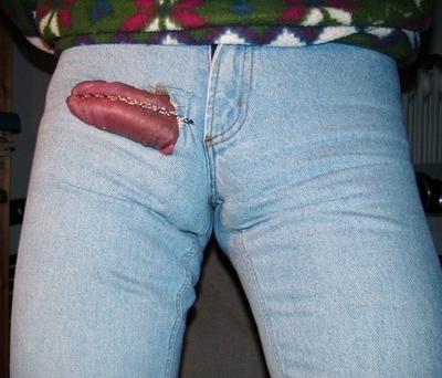 meine schärfste Jeans ist nicht nur hauteng, sondern hat ein Loch für den Schwanz und eine Kette, mit der er an die enge Hose gefesselt wird. Wenn die Kette straff in der Eichelspalte sitzt, erregt das noch mehr ... dann wird der Schwanz noch härter, aber die Kette gibt nicht nach.
