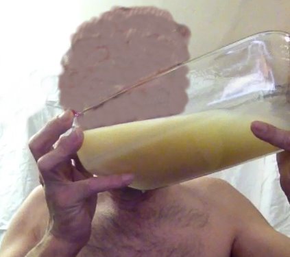Hewitt Es geht hier um ein Schnapsglas mit Sperma drin und nicht um ne Schüssel voller Vanillesoße. Oh man`?`!
