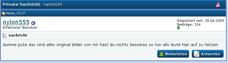 Im Übrigen kannst Du Dir solche PN sparen, sie ringen mir kaum ein müdes Lächeln ab, zeigen aber doch, wie sehr getroffene Hunde bellen. Das Du Dich nicht schämst hier die Leute für dumm zu verkaufen und bei Überführung auch noch beleidigend wirst, spricht Bände über Dich und bestätigt Dein Tun.