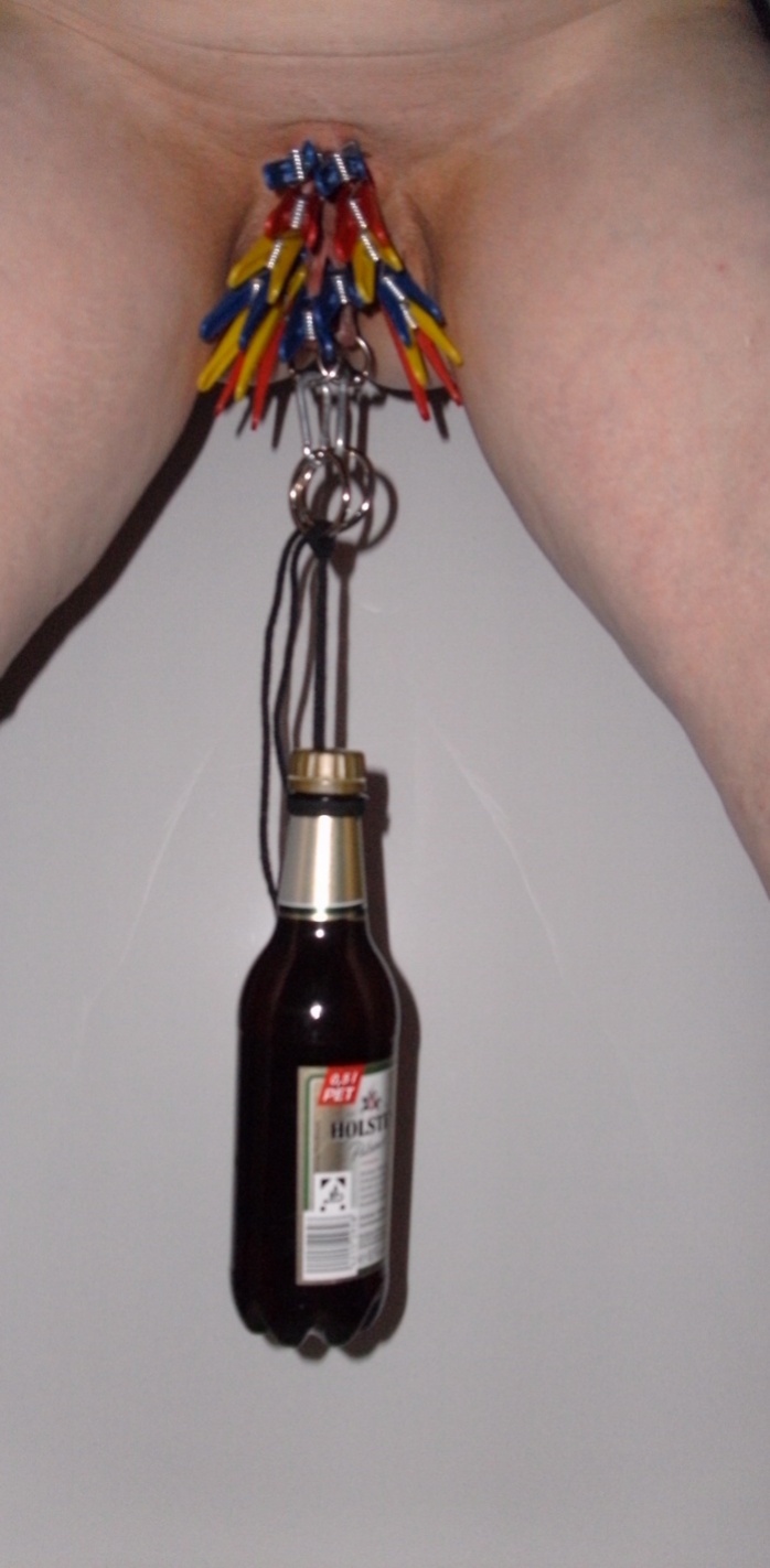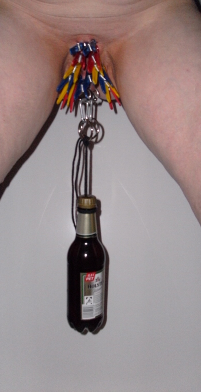 ihr könnt es anhand der bilder ja sehn... je seite 7 klammern auf die lippen und eine halbliterflasche an die ringe gehängt...
