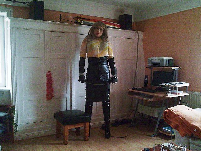 heute hatte ich lust auf einen dominanten style mit hoobleskirt und einer durchsichtigen bluse, da drunter trage ich bh strapse und string aus schwarzem lack