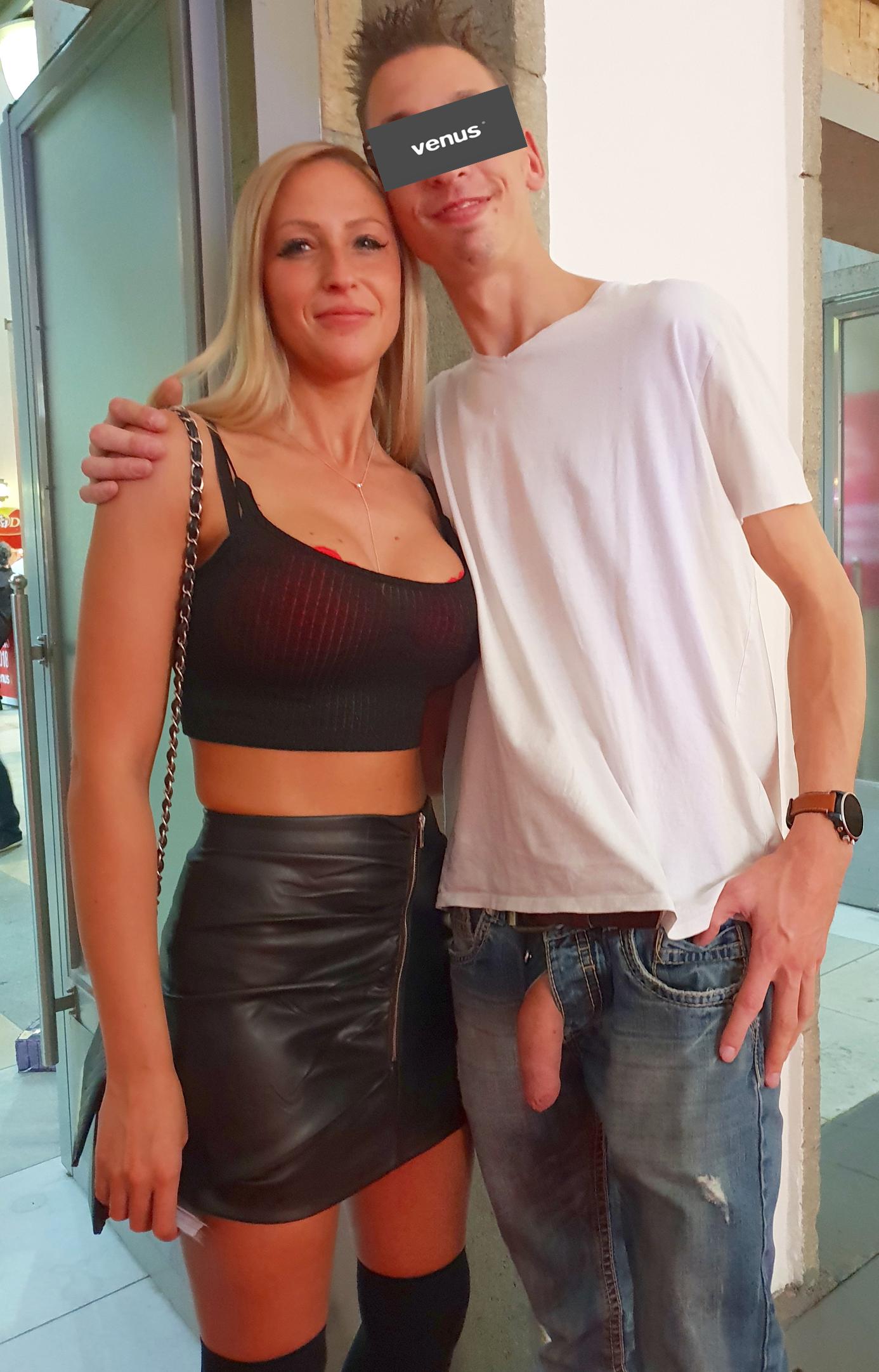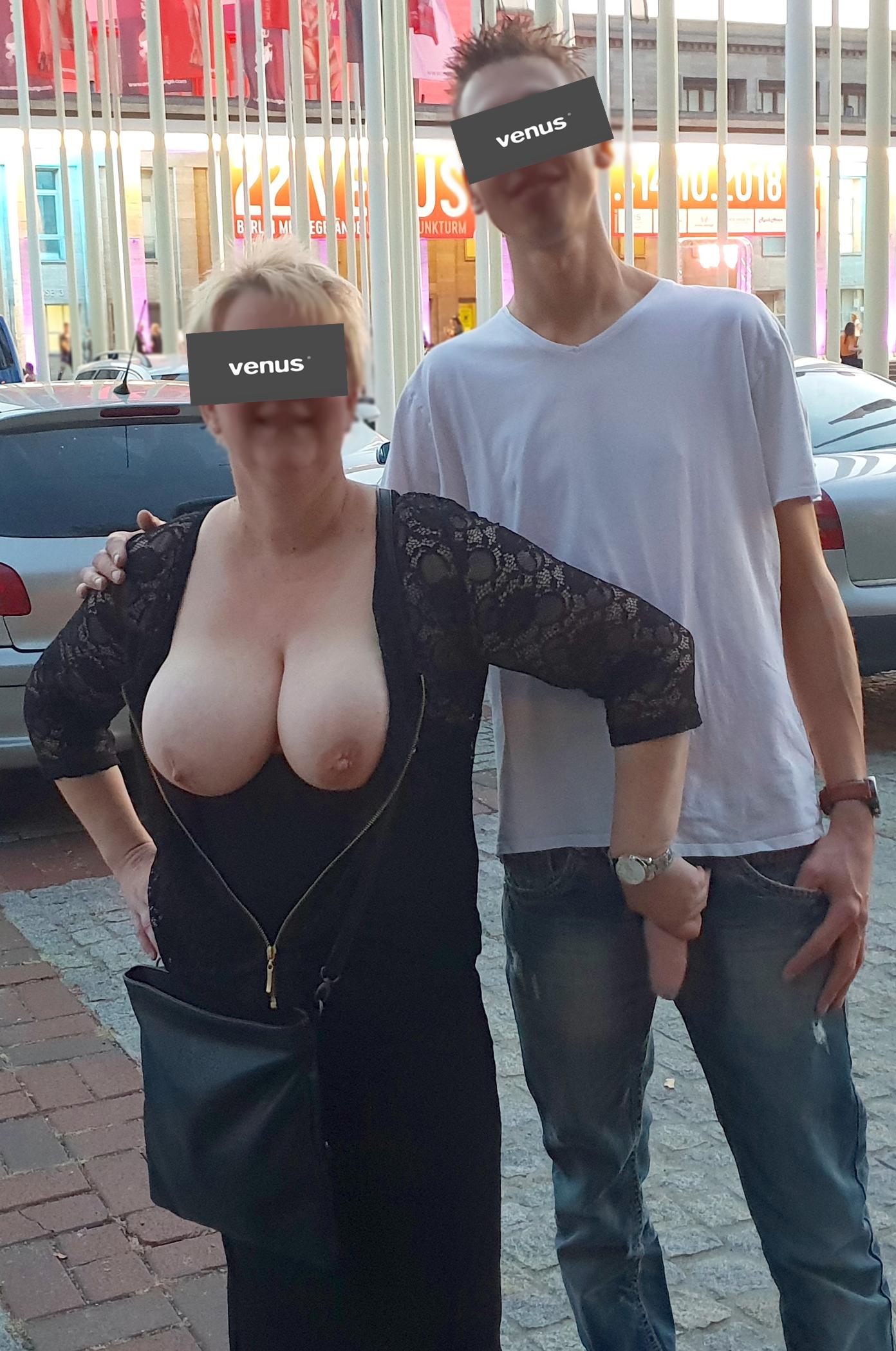 Na dann möchte ich, dass du noch ein bisschen unruhiger wirst, oder alternativ auch so geil rattengeil wie ich war, als ich hinter meinem Schatz und Flo hergelaufen bin und beobachtet habe wie andere Messegäste zugefasst haben. Julias Brüste und Flo`S Schwanz waren die heimlichen Hauptdarsteller auf der Venus- Na ja fast ;-) Hier noch ein paar Beispiele mit dem Motto: Flo lässt lang hängen und lässt sich mit Stars und Sternchen fotografieren. Ich hoffe das Thema macht dich geil!